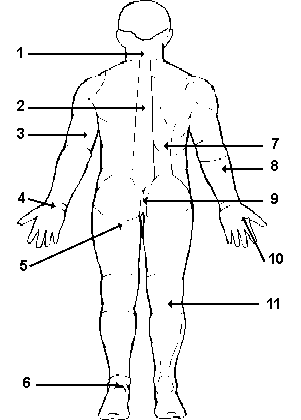 | 4 | Centro del abdomen | 2 | 4 |